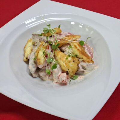 200гр.язык отв., помидор св.,сыр халуми, соус майонезный