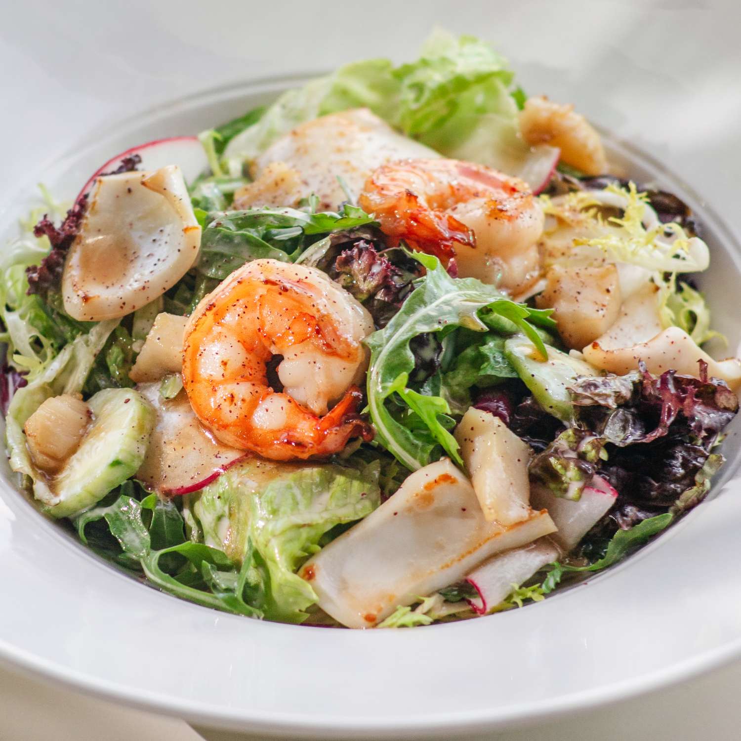 тунец,микс салата,черри,огурцы,яйцо куринное пашот, пармезан,кунжут,соус
