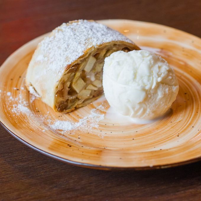 Штрудель с грушей ,дор-блю и ванильным мороженным