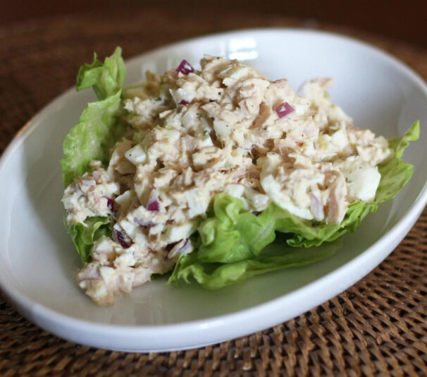 тунец в собственном соку, | Больше тунец в собственном соку, салат Айсберг, горошек консервированный, яйцо, красный лук, сыр Российский, заправлен греческим йогуртом, 250 г| Скрыть