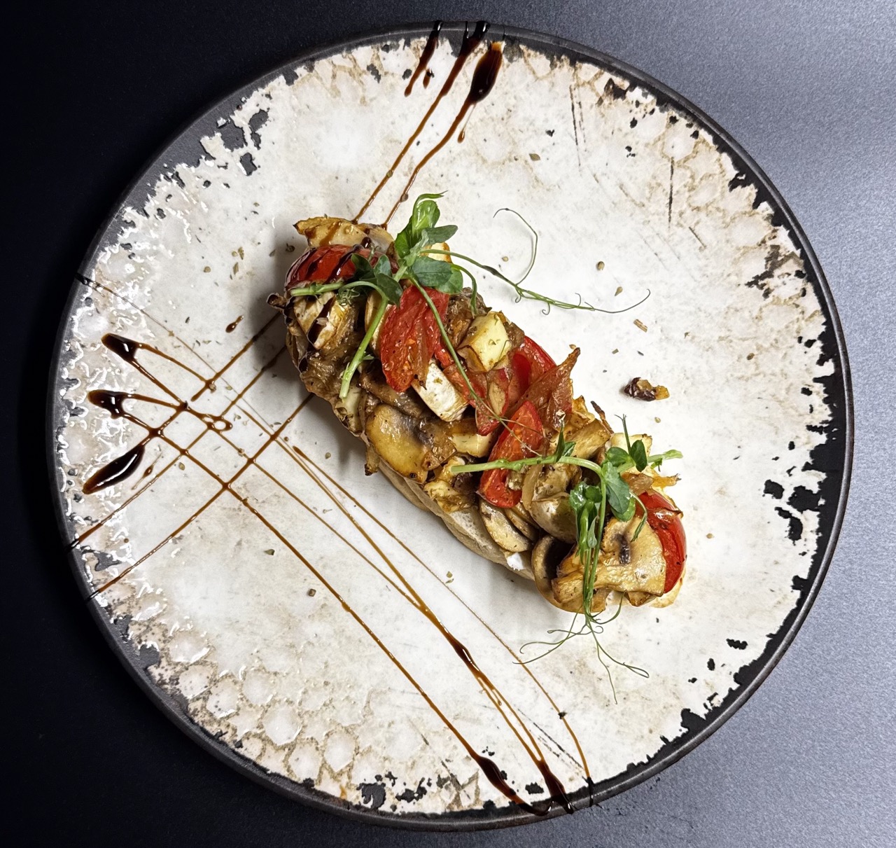 Тост из чиабатты, творожны | Больше Тост из чиабатты, творожный сыр, обжаренные с чесноком и луком белые грибы, шампиньоны, сыр камамбер, томаты черри| Скрыть