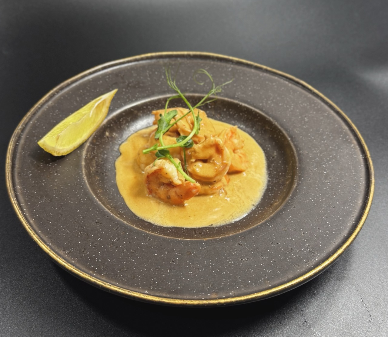 Обжаренные тигровые креве | Больше Обжаренные тигровые креветки, чеснок, соус сливочный, соус "биск", лимон| Скрыть