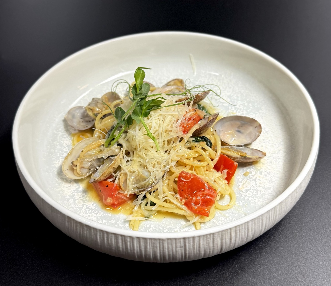 Паста спагетти, обжаренны | Больше Паста спагетти, обжаренные вонголе на сливочном масле с вином, чесноком, репчатым луком, шпинатом и перцем Чили, пармезан.| Скрыть