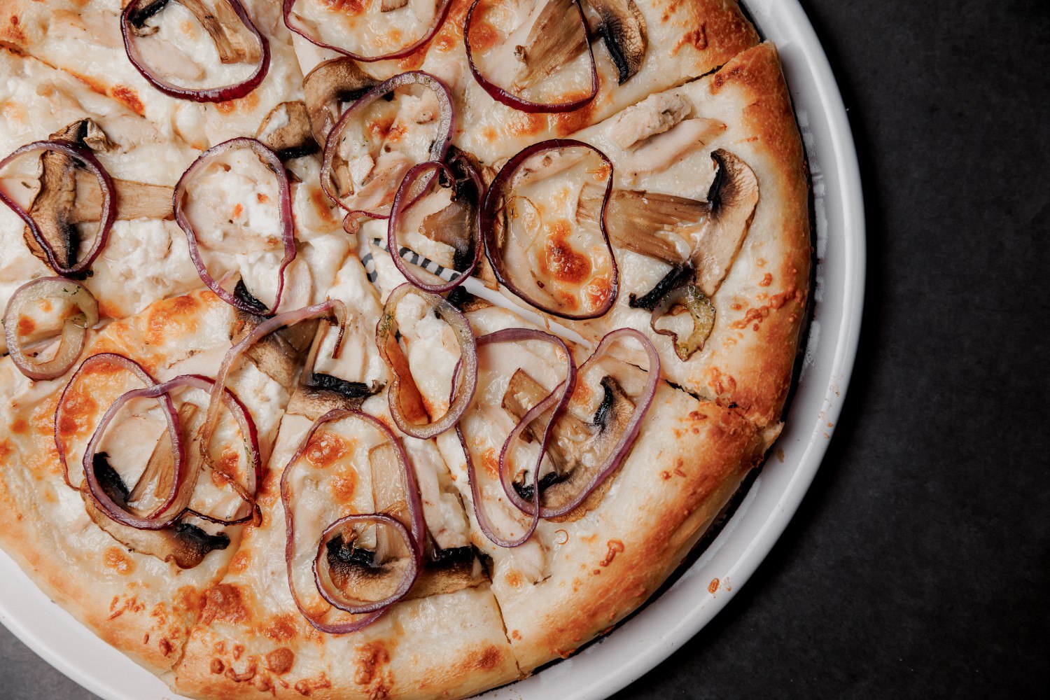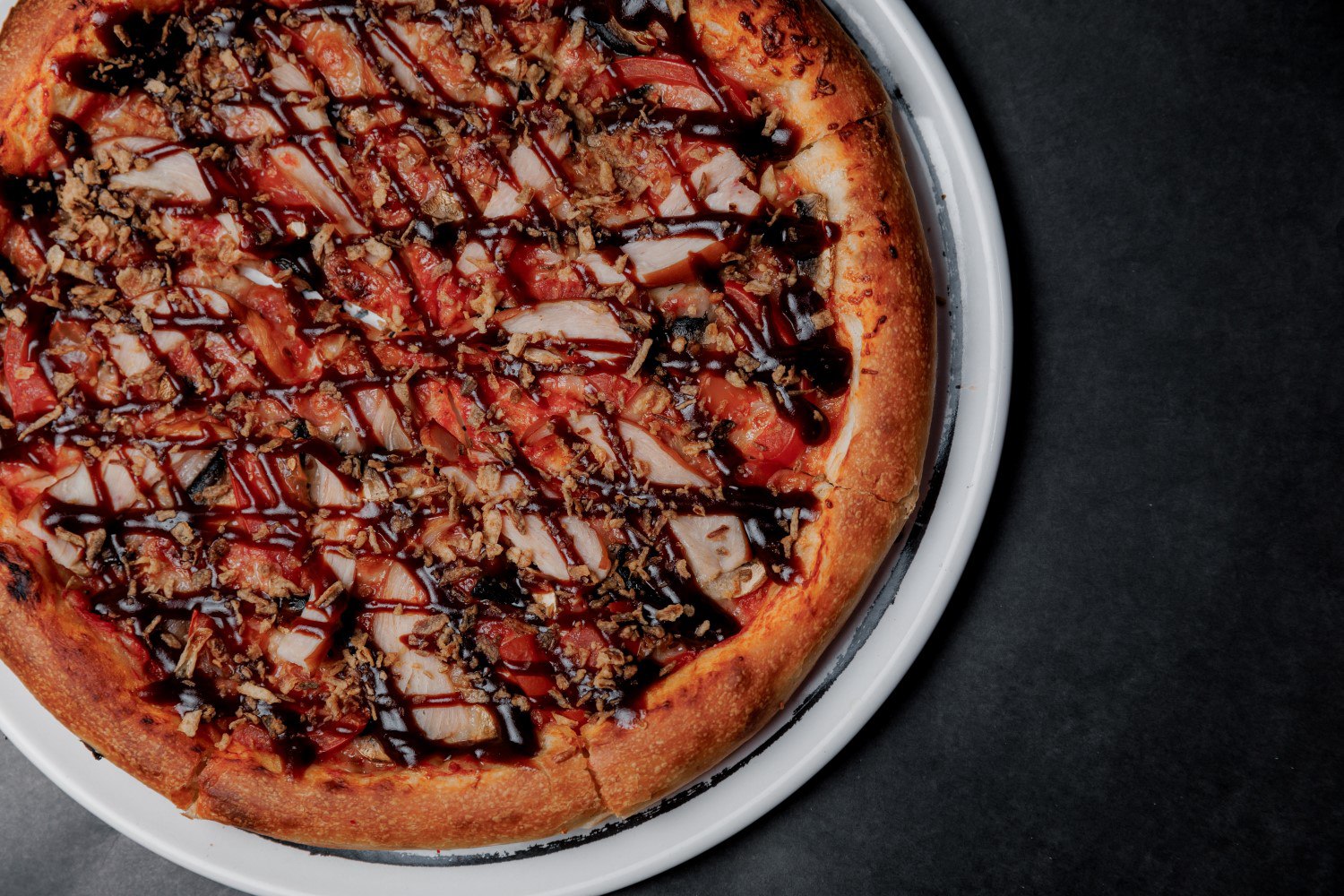 Соус из протертых томатов, | Больше Соус из протертых томатов, барбекю соус, копченая грудка, помидор, грибы шампиньоны, лук карамелизированный, сыр моцарелла| Скрыть
