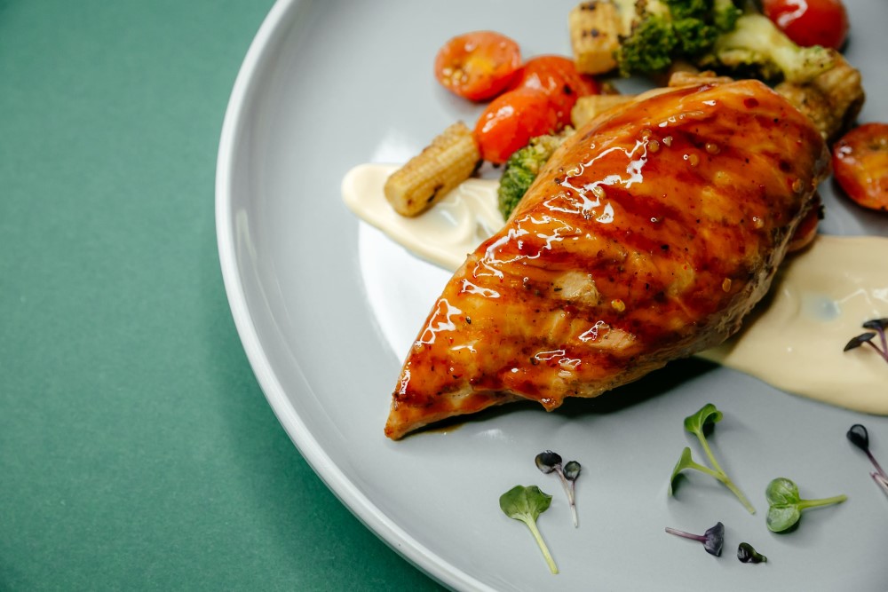 Куриное филе, помидоры гри | Больше Куриное филе, помидоры гриль, фасоль стручковая, брокколи гриль, сливочно-сырный соус| Скрыть