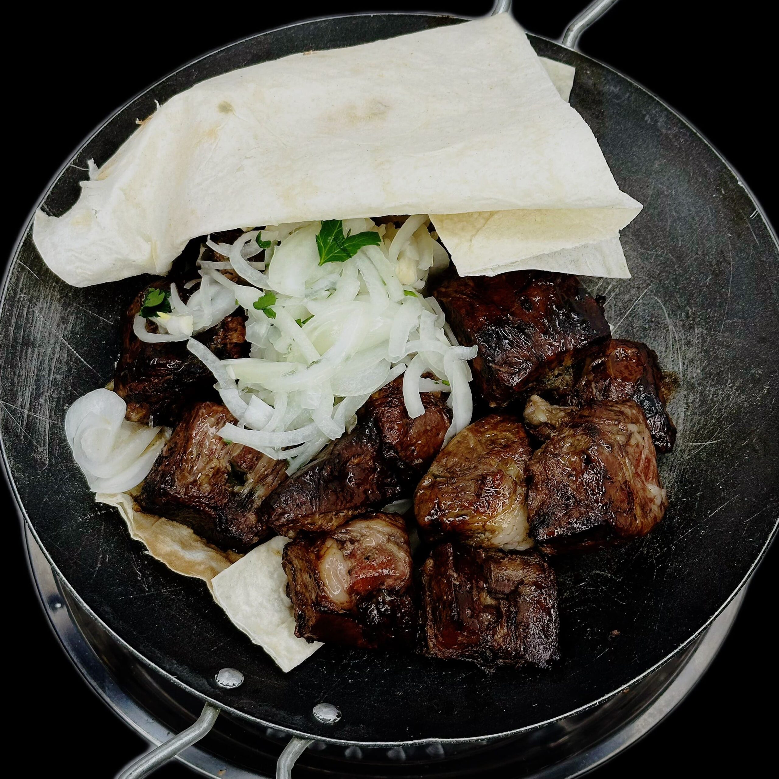 Балыксвиной на кости на ма | Больше Балыксвиной на кости на мангале, подаётся с соусом наршараб| Скрыть