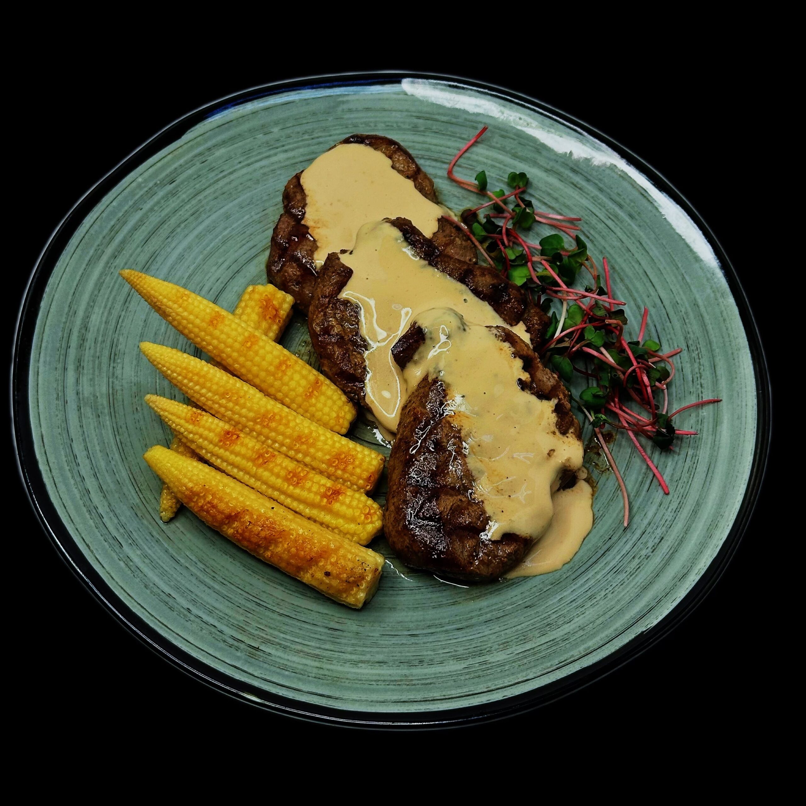Сочетаниеобжаренной теля | Больше Сочетаниеобжаренной телятины с нежным сыром Бри, кедровыми орехами, помидорами черри исладким болгарским перцем, заправляется фирменным соусом с добавлениемВорчестера| Скрыть