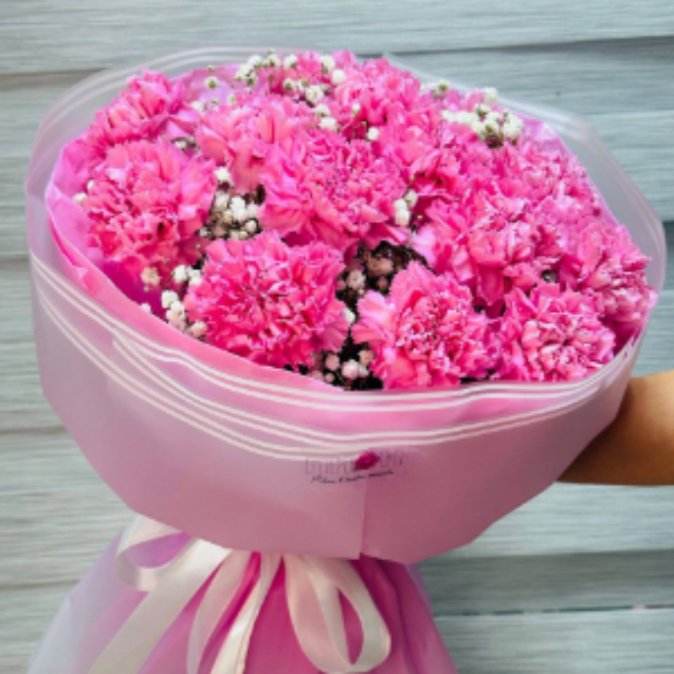 Моно букет с гипсофилой и диантусом