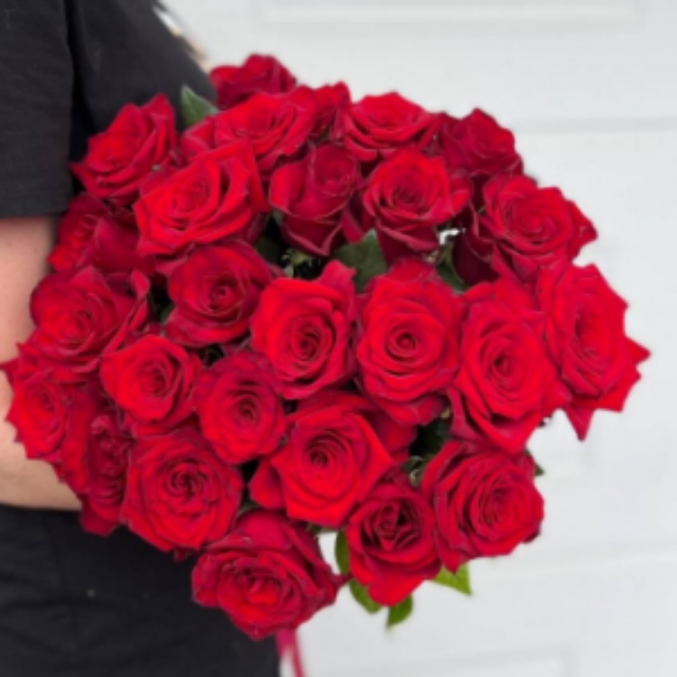 25 красных роз в оформлении