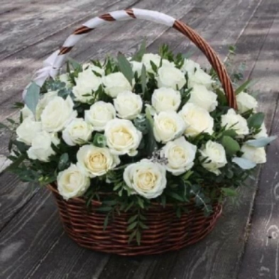 Корзина из 25 белых роз