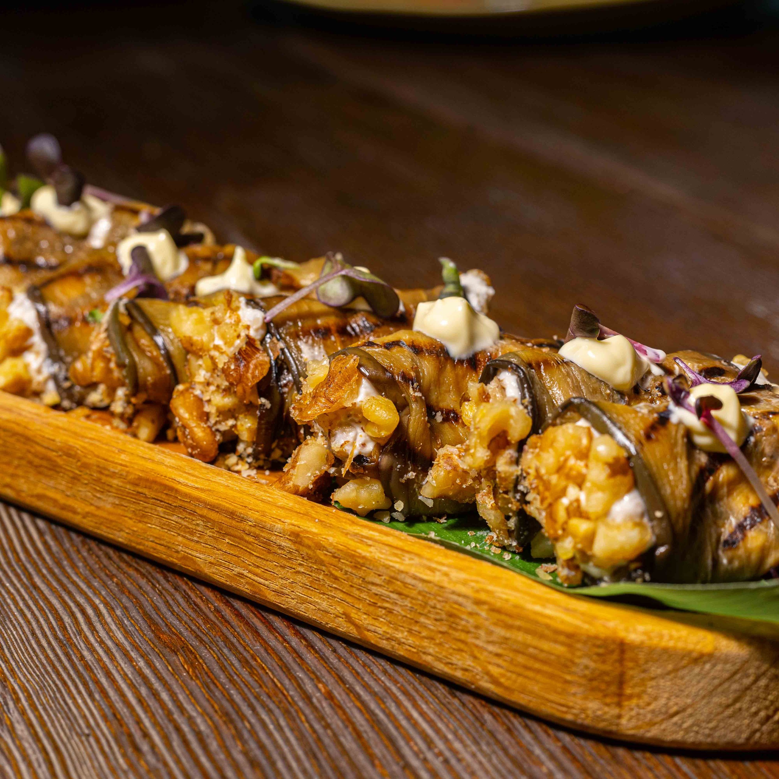 Рулетики из баклажан с мягким сыром