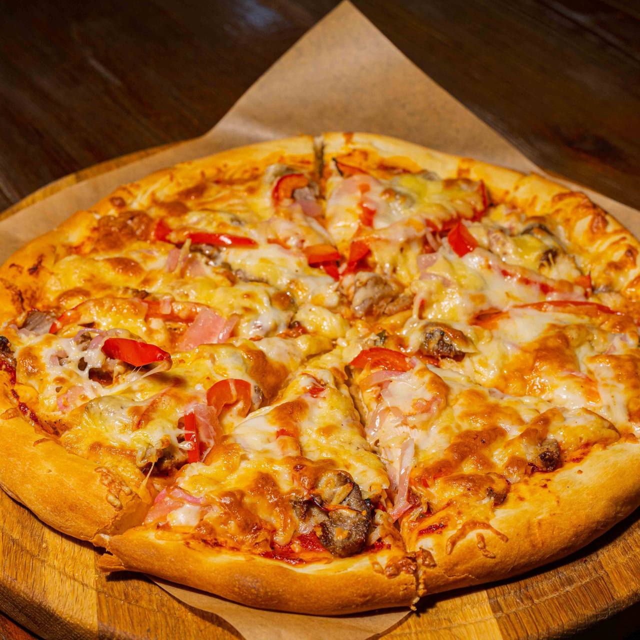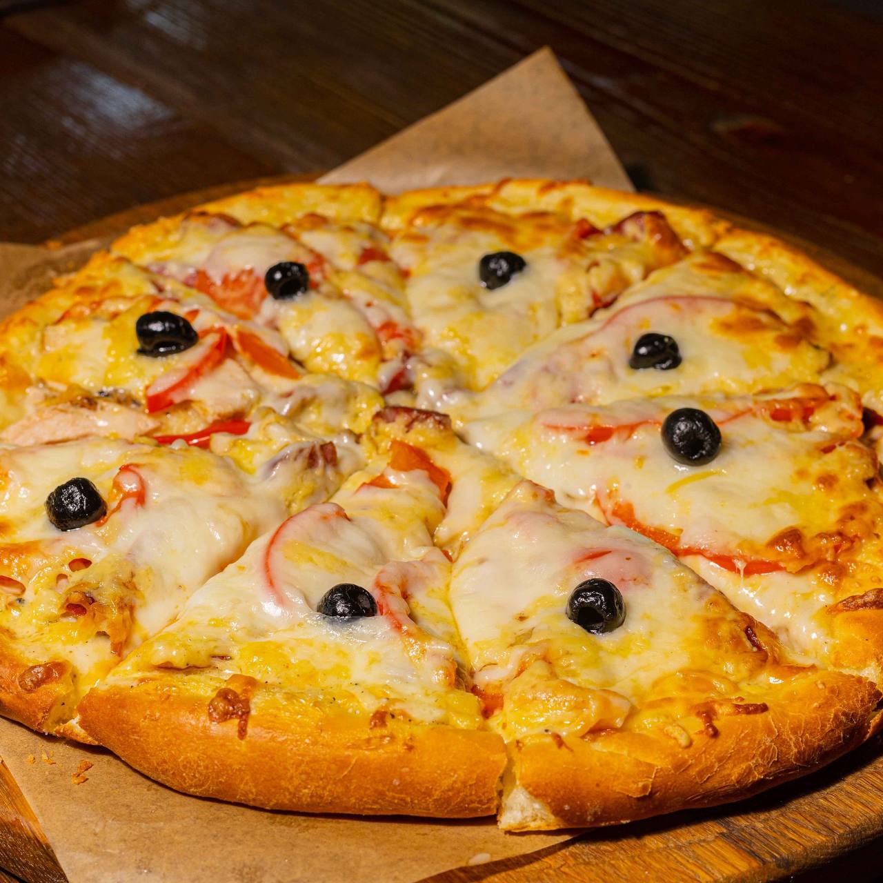 Пицца с куриным филе домашнего копчения