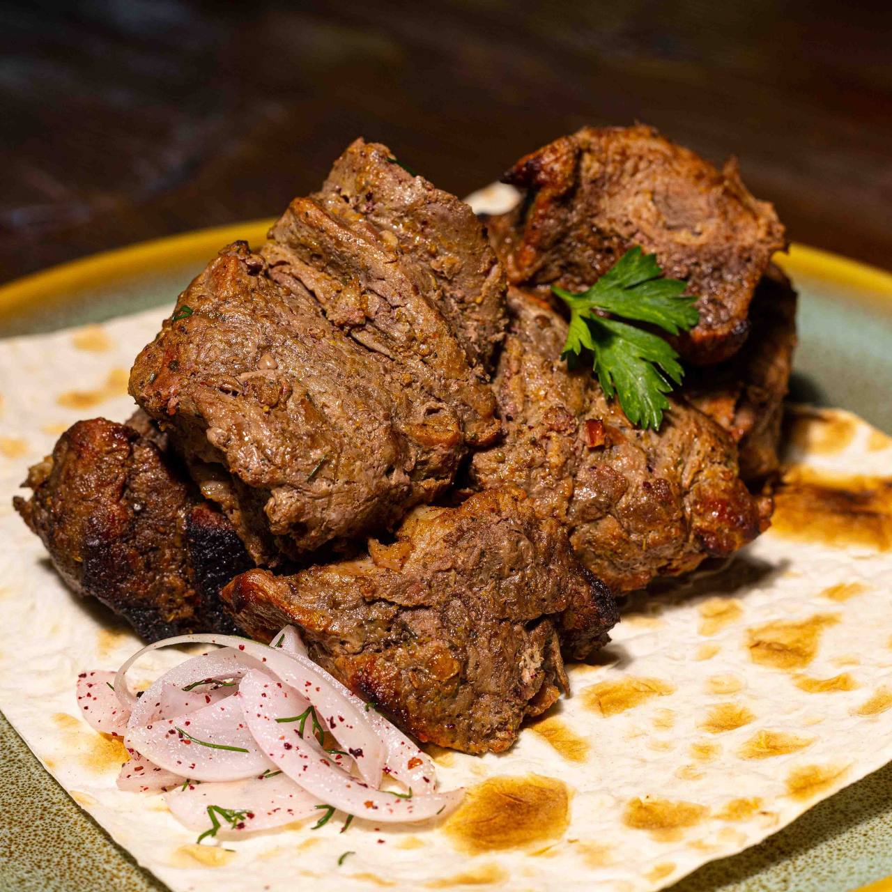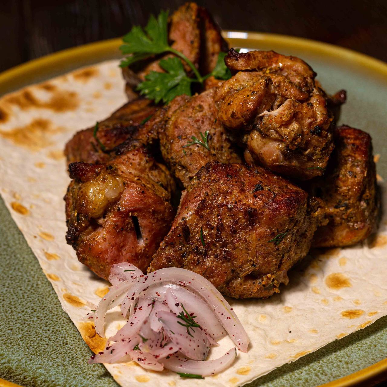 2кг Шашлык из свиного ошей� | Больше 2кг Шашлык из свиного ошейка,запечённые овощи,лук маринованный,зелень| Скрыть